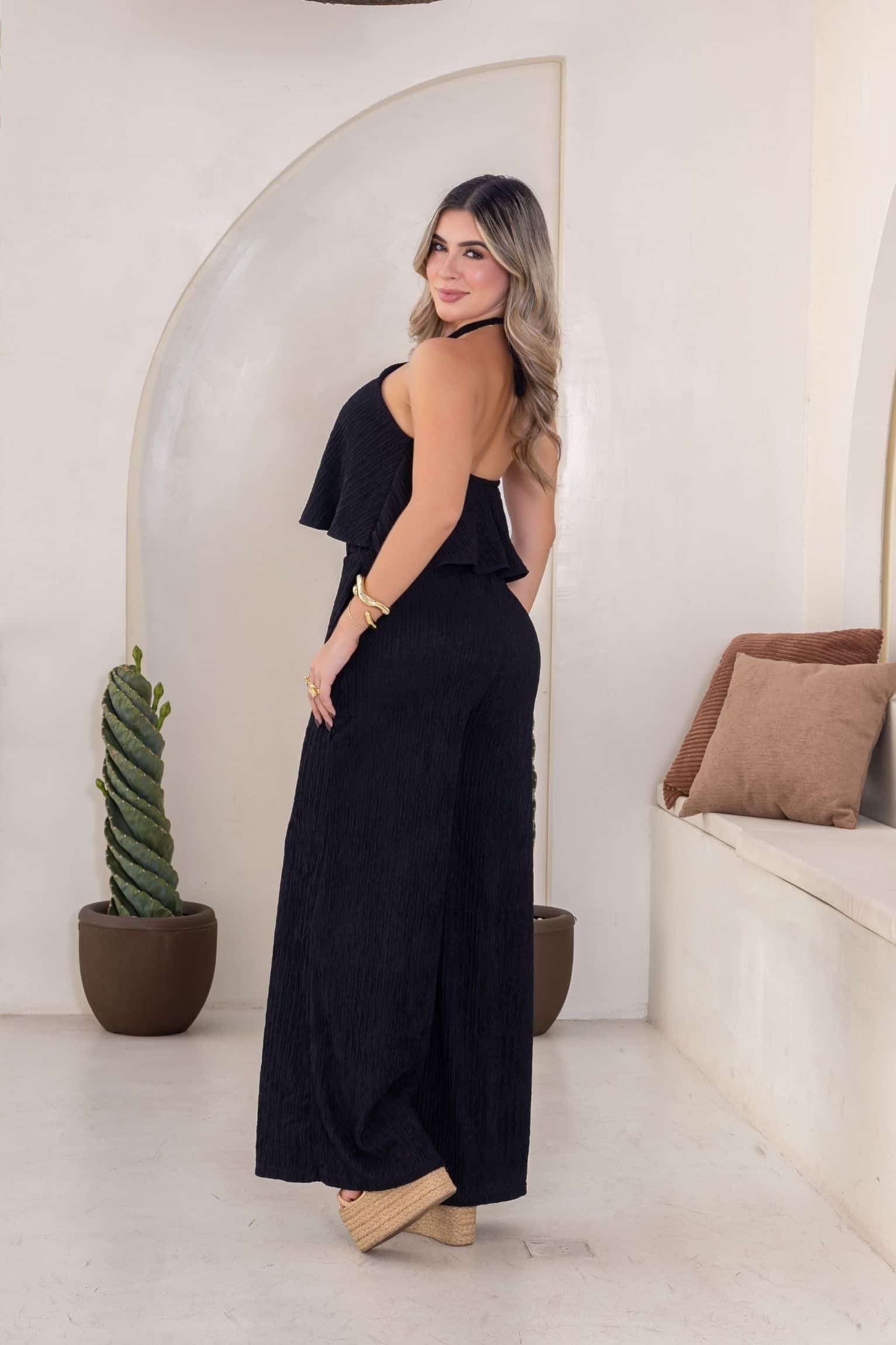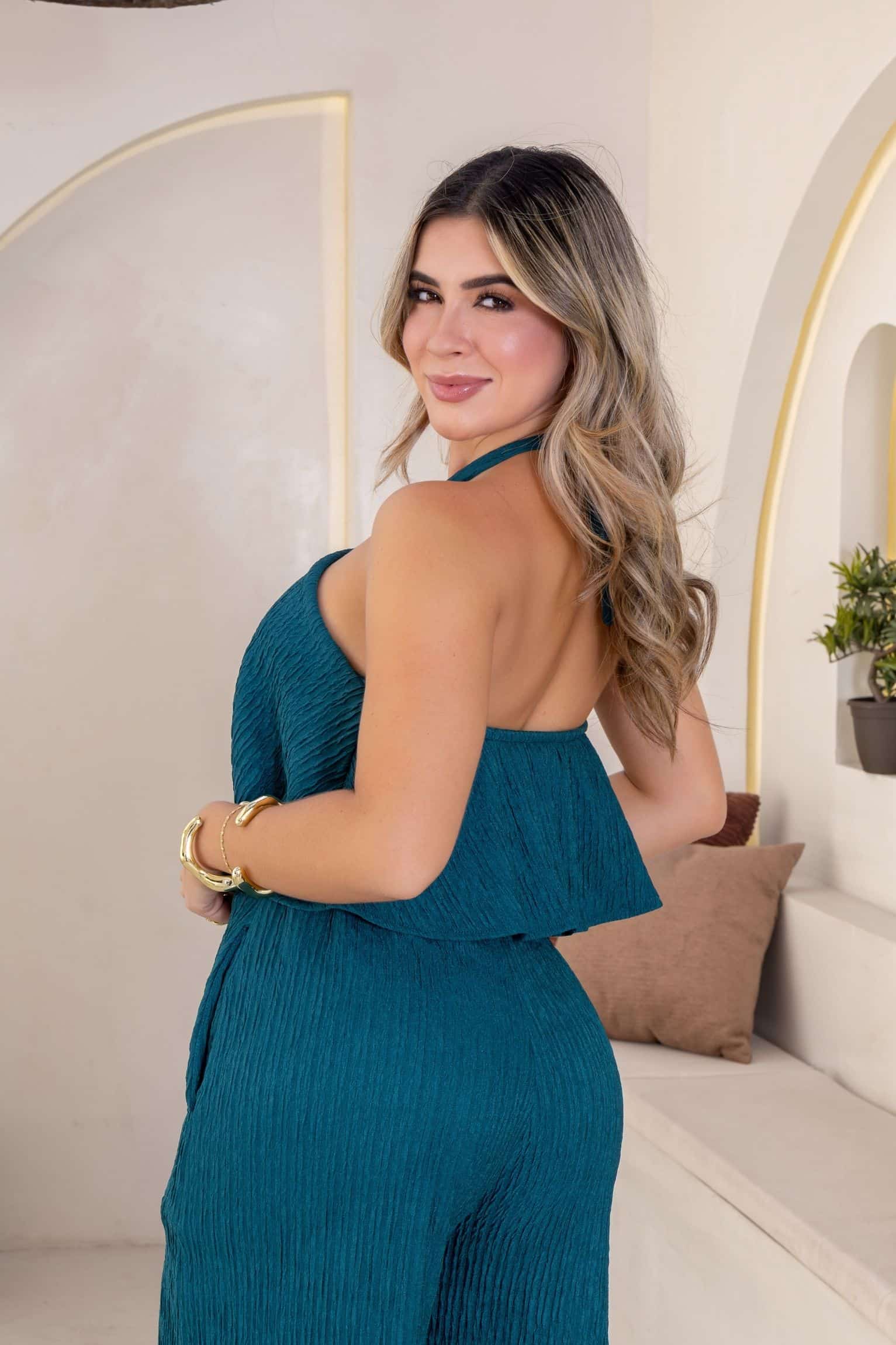 El Enterizo Greece es la prenda “todo en uno” que estabas buscando para lucir increíble sin complicaciones. Gracias a su confección en tela licrada corrugada, este diseño ofrece una textura única que se adapta perfectamente a tus curvas.